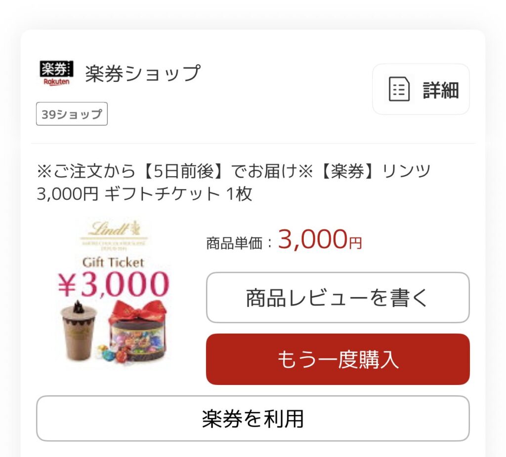 購入履歴→「楽券を利用」