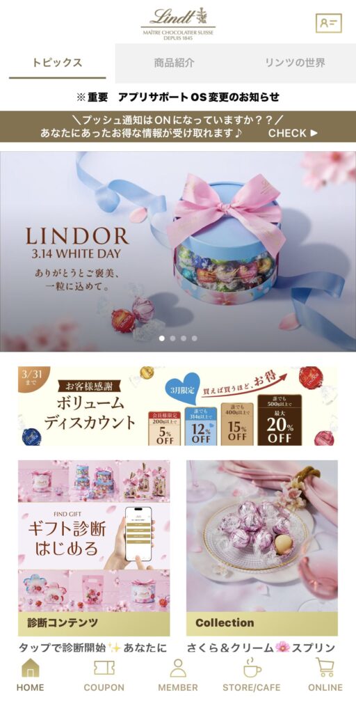 リンツのアプリでも
