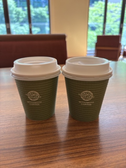 私はカプチーノ¥600、夫は桃の季節限定を選んでいました。