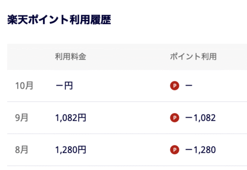 使った分だけ請求される楽天(¥1,078〜¥3,278)。