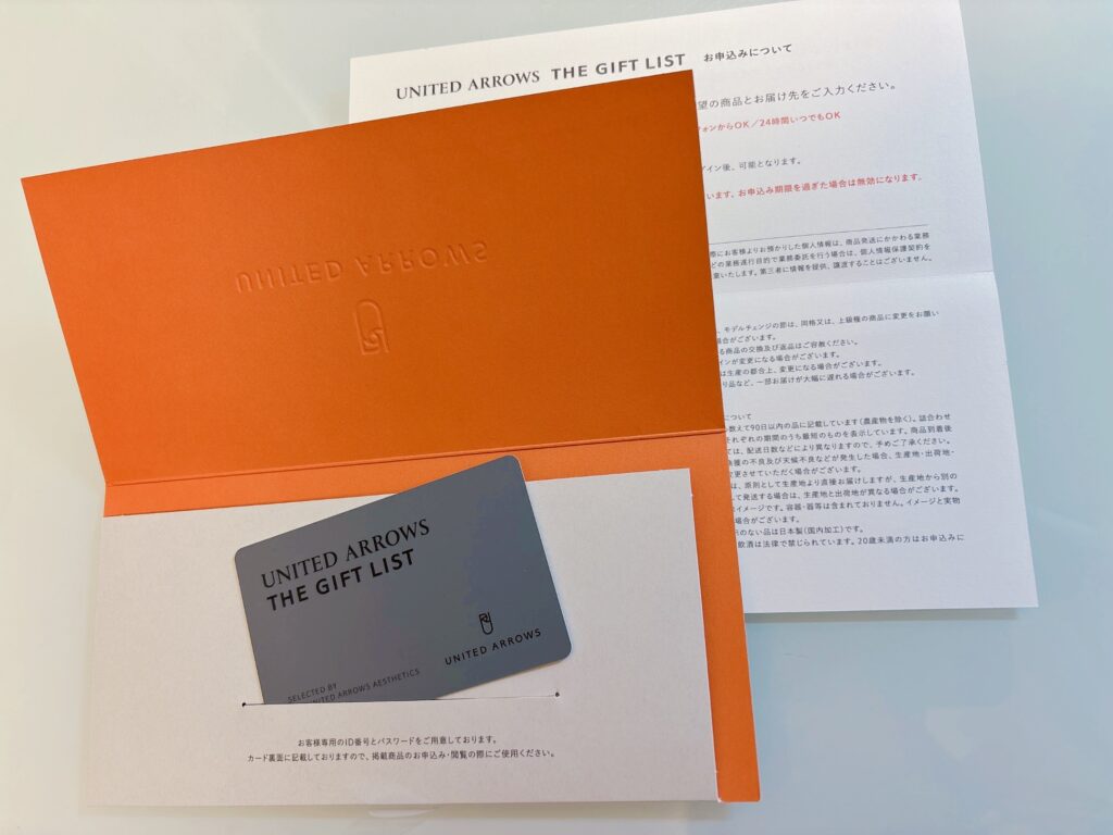 実際に販売されているギフトカタログ「ユナイテッドアローズ ギフトリスト(Aコース)」でした。