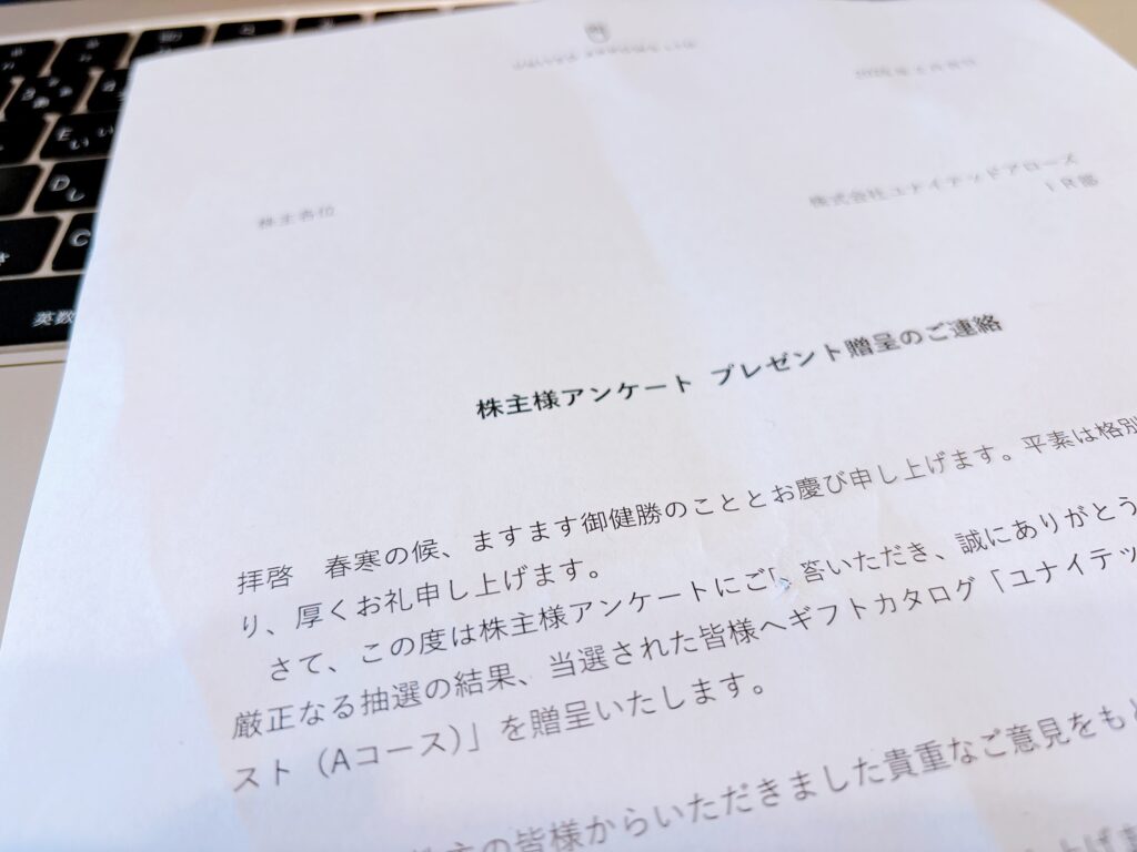 昨年の中間決算で回答した株主アンケートで当選したそうです。